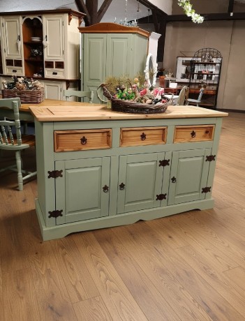 Dvoudílný příborník v krémové barvě v kombinaci se dřevem vnese do vašeho domova nádech venkovského stylu. Nabízí praktické police a šuplíky, které poskytují dostatek úložného prostoru a skvěle doplní jakýkoli interiér toužící po útulné a venkovské atmosféře.
